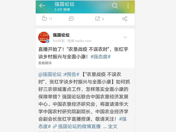 “農(nóng)墾戰(zhàn)疫 不誤農(nóng)時”云直播公益大講堂已經(jīng)舉辦5期,不僅深受全國各墾區(qū)和農(nóng)場企業(yè)的歡迎,還引起了社會各界的廣泛關注。人民網(wǎng)強國論壇、人民微博等平臺在此次直播期間同步導流,農(nóng)民日報新媒體平臺對直播進行了宣傳報道。