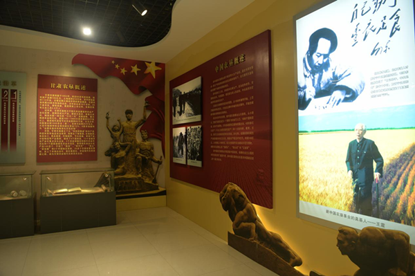 一是艱苦創(chuàng)業(yè)時期。主要陳列的是農(nóng)墾艱苦奮斗創(chuàng)業(yè)時期的一些歷史文件、支邊青年的書信、辦公生活用品、生產(chǎn)工具以及甘肅農(nóng)墾的歷屆領(lǐng)導(dǎo)人圖表。展現(xiàn)了新中國的農(nóng)墾事業(yè)自南泥灣大生產(chǎn)運動起源,在毛澤東等老一輩無產(chǎn)階級革命家的親自決策和領(lǐng)導(dǎo)下,在王震同志直接組織指揮下創(chuàng)建和發(fā)展情況;甘肅農(nóng)墾自1953年創(chuàng)建以來,廣大的復(fù)轉(zhuǎn)官兵、知識分子、城市青年從祖國的四面八方匯聚到隴原大地,戰(zhàn)天斗地,擔當起屯墾戍邊的歷史使命,幾代農(nóng)墾人秉持不怕犧牲、無私奉獻的勞動情懷和創(chuàng)業(yè)品格,完成了農(nóng)墾、軍墾、地方,再到農(nóng)墾不同時期的歷史任務(wù),推動農(nóng)墾事業(yè)取得從無到有、從小到大、從弱到強的歷史性成就情況。其中還以3D模型方式生動再現(xiàn)了肩扛手提、開荒造田的火熱場景,反映了那段激情燃燒的歲月。
