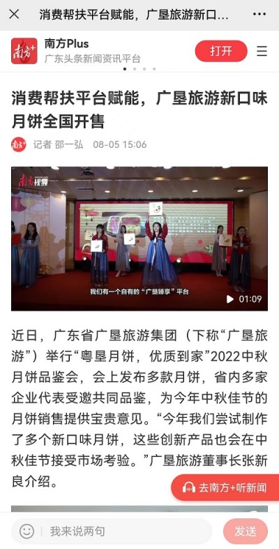 8月5日,“南方+”客戶端以《消費(fèi)幫扶平臺賦能,廣墾旅游新口味月餅全國開售》為題,報(bào)道了廣墾旅游集團(tuán)攜手墾區(qū)各單位,在月餅制作上推陳出新的情況。以下是報(bào)道全文。