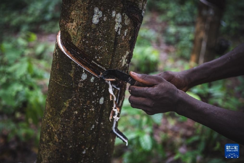 5月30日,橡膠種植戶在科特迪瓦圣佩德羅省大貝雷比鎮(zhèn)收割橡膠。新華社記者 王冠森 攝
