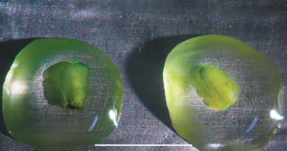 小滴玻璃化法超低溫保存鳥巢蕨小液滴。受訪者供圖