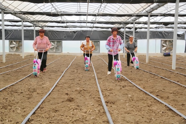 走進(jìn)大棚,只見一臺臺小巧靈活的播種機(jī)在工作人員的操控下穿梭于田間。紅色醒目的播輪在地上行走自如,發(fā)出陣陣歡快的聲響,將一粒粒黑豆種下。這臺機(jī)器以其輕便快捷的特點(diǎn),大大提高了播種效率?!八粌H能夠?qū)崿F(xiàn)精準(zhǔn)播種,確保每顆豆子都能以相同的間距和深度植入土壤,還為后續(xù)的統(tǒng)一管護(hù)提供了極大的便利。”在現(xiàn)場,技術(shù)員鄒品才介紹。
