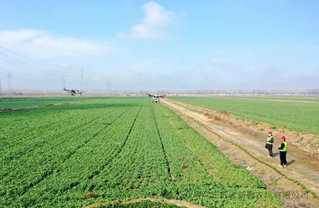 田間地頭春管忙 科技賦能護(hù)糧安。2月26日,一場“及時(shí)雨”滋潤了新曹農(nóng)場的良田,也為春季農(nóng)業(yè)生產(chǎn)拉開了序幕。當(dāng)前,正值小麥拔節(jié)、油菜抽薹的關(guān)鍵生長期,也是田間管理的黃金窗口期。在各農(nóng)業(yè)生產(chǎn)區(qū),管理人員搶抓墑情有利時(shí)機(jī),忙碌在田埂阡陌之間?!俺弥旰笸寥缐勄楹?,我們抓緊開展施肥、病蟲害防治工作,為夏糧豐收打好基礎(chǔ)。”農(nóng)業(yè)中心主任翟仲凱介紹道。如今,新曹農(nóng)場的田間管理早已告別“面朝黃土背朝天”的傳統(tǒng)模式,現(xiàn)代化農(nóng)機(jī)、植保無人機(jī)大顯身手。無人機(jī)騰空而起,精準(zhǔn)完成農(nóng)藥噴灑作業(yè);地面上,拋肥機(jī)精準(zhǔn)施肥,地空一體,協(xié)同發(fā)力,科技興農(nóng)托起豐收的希望。