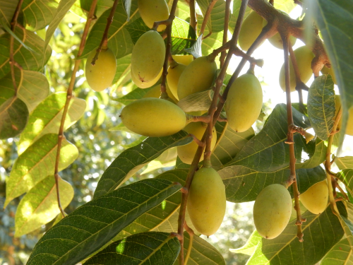 靈峰橄欖”“清欖2號(hào)”橄欖是從福州地區(qū)的長(zhǎng)營(yíng)橄欖實(shí)生群體中選育出的鮮食新品種,這兩個(gè)品種綜合性狀表現(xiàn)良好,適應(yīng)范圍廣。其中“靈峰橄欖” 為晚熟品種,其果肉質(zhì)地脆、化渣、回甘好、風(fēng)味濃郁,鮮食品質(zhì)優(yōu)異;“清欖2號(hào)”為中熟品種,果肉質(zhì)地脆、化渣、澀味淡,鮮食品質(zhì)良好,且豐產(chǎn)性高。經(jīng)現(xiàn)場(chǎng)測(cè)產(chǎn),“靈峰橄欖”高位嫁接9年后,平均單株產(chǎn)量84.8 kg,折合畝產(chǎn)1611.2 kg;平均單果重8.0 g,可溶性固形物含量12.5%,可食率80.7%?!扒鍣?號(hào)”高位嫁接9年后,平均單株產(chǎn)量94.2 kg,折合畝產(chǎn)1789.8 kg;平均單果重7.5 g,可溶性固形物含量11.4%,可食率78.3%。目前,“靈峰橄欖”“清欖2號(hào)”橄欖已在福建、廣東、廣西等橄欖產(chǎn)區(qū)推廣應(yīng)用。