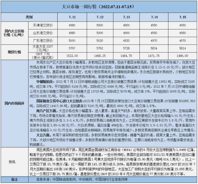 天然橡膠、大豆、玉米市場一周行情(2022.07.11-07.15)