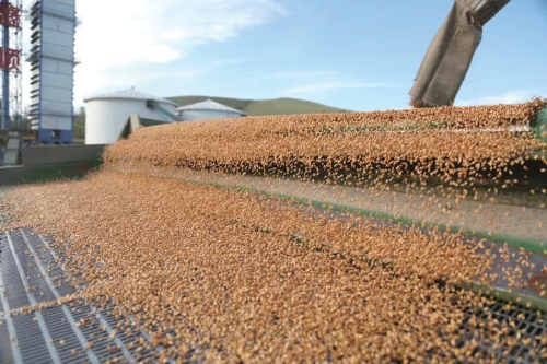 免渡河農(nóng)牧場收獲的小麥正在進(jìn)行篩選,等待烘干后入倉?!⊥踯帯z
