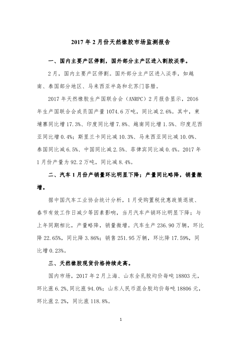 2017年2月份天然橡膠市場(chǎng)監(jiān)測(cè)報(bào)告
