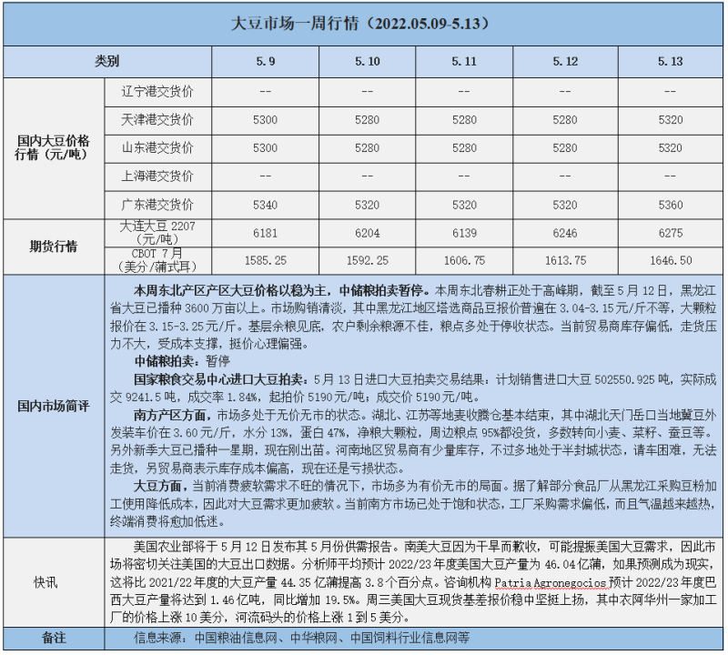 天然橡膠、大豆、玉米市場(chǎng)一周行情(2022.05.09-05.13)