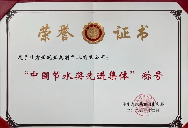 12月26日,首屆中國節(jié)水獎頒獎會在北京召開,亞盛亞美特公司榮獲“中國節(jié)水獎先進集體”稱號。該獎項是經(jīng)黨和國家功勛榮譽表彰工作委員會批準設(shè)立、由水利部主辦的節(jié)水領(lǐng)域最高獎項。