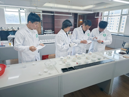 福鼎集團(tuán)組織專家對(duì)入倉(cāng)成品茶(白毫銀針)進(jìn)行品質(zhì)溯源、等級(jí)評(píng)審、價(jià)值評(píng)估?!∈茉L者供圖