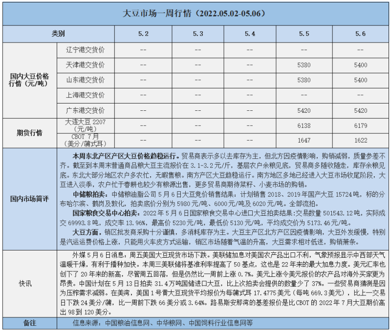 天然橡膠、大豆、玉米市場一周行情(2022.05.02-05.06)
