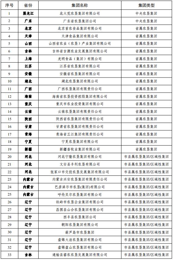 全國農(nóng)墾企業(yè)集團(tuán)名單及分類
